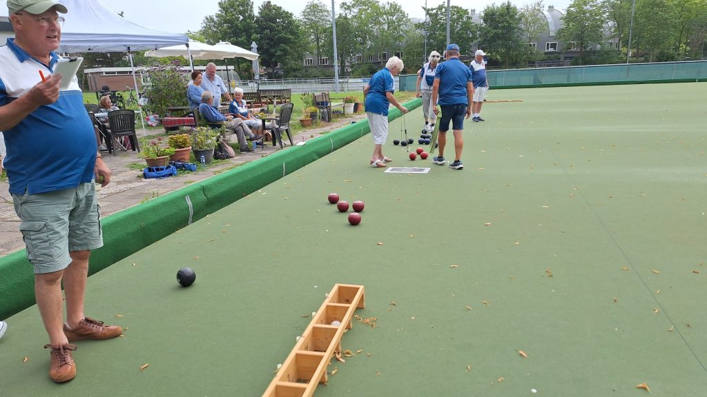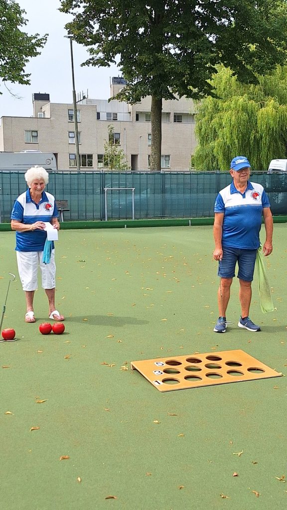 waarna er 2 partijen z.g. varia bowls werden gespeeld, dus één en al behendigheid en balgevoel was een vereiste. Er werd goed meegedaan, gelukkig waren er ook meerdere lachsalvo’s te horen, een bewijs dat de spelers zich uitstekend vermaakten.